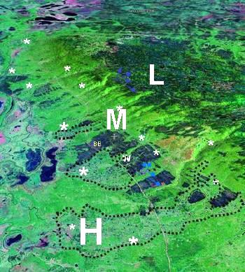 The Pasquia Plateau has significant wetland areas as shown on the left high resolution