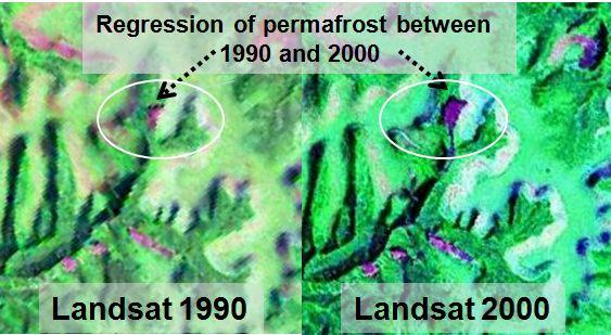 An excellent selection of sites in the Yukon showing significant slides and regression of permafrost in mineral soils was made available on Google Earth by Doug Davidge "kingpointnorth" (Google Earth BBS link). Although the sites are not described or documented, they provide an a good start for further study.