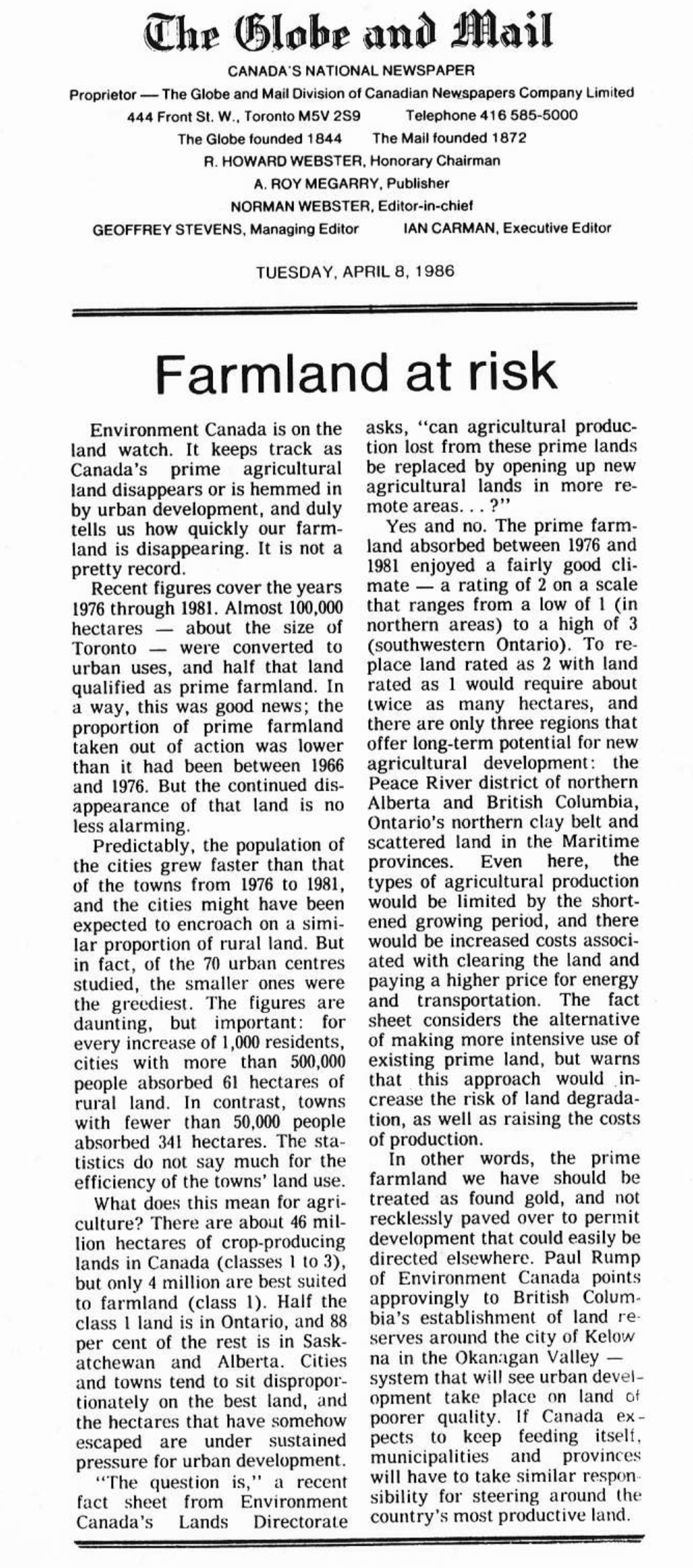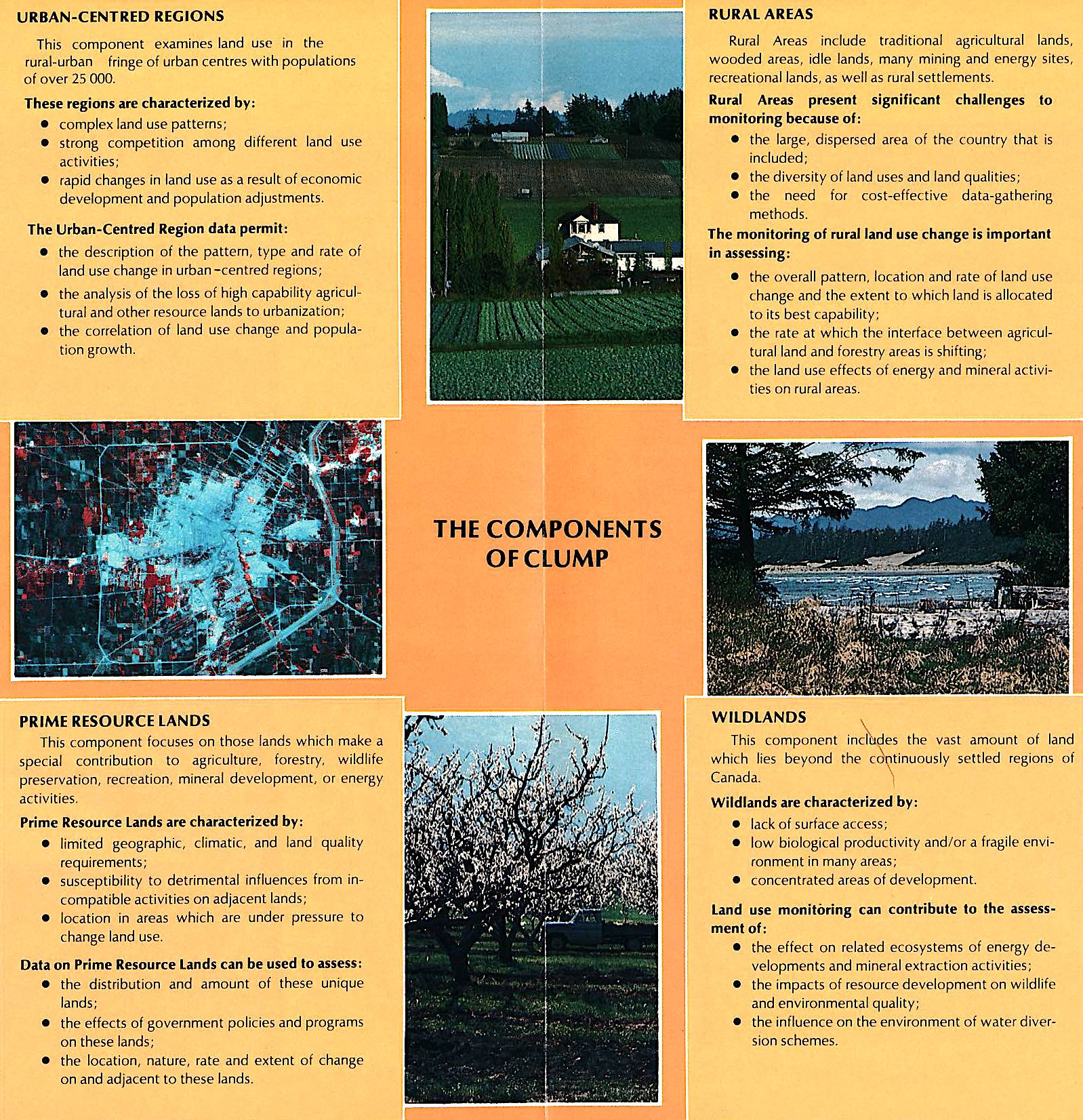 The Canada land Use Monitoring Program was started in 1978 to systematically monitor Land use change in Canada following the completion of the the Canada Land Inventory (CLI). The CLI, in addition to land capability for agriculture, forestry, wildlife (waterfowl and ungulates) and recreation, mapped 'present' land use between 1966 and 1976. The CLUMP program, part of the Lands Directorate of Environment Canada, continued this mapping on a 5 year cycle until 1988.