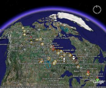 The markers show just a small smaple of the locations of multiple beaver dams |